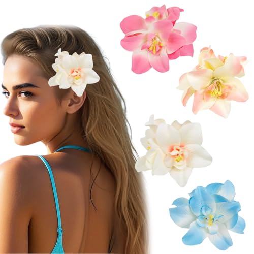 BelleVive 4 stycken Hawaii-blommor hårklämmor för kvinnor, konstgjord tropisk hårspänne, hibiskus kloklämma, strand, semester, fest, boho, hårtillbehör för kvinnor och flickor