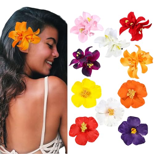 FloralGrace 10 st Hawaii-blommor, hårklämmor för kvinnor, plommon, hibiskus, hårnålar, konstgjorda blommor, hårklämmor, hårdekorationer för semester, fest, strand, sjö