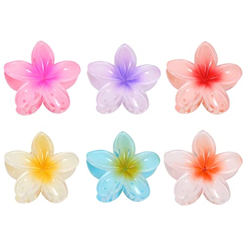 Aucuu 6 st halkfria blomklämmor, starkt grepp hawaiiansk kloklämma, akryl hårklämma för medium tjockt hår, plumeria blomma hårklämmor, Hawaii hårtillbehör för kvinnor och flickor