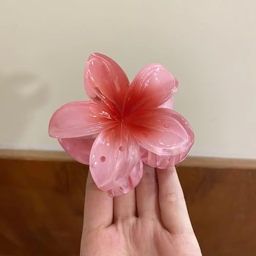 Blomma hårklämmor, Hawaii Blomma hårklämmor, stora blomformade kloklämmor, halkfria blomklämmor, stora klämmor för tjockt/tunt hår (Rosaröd)