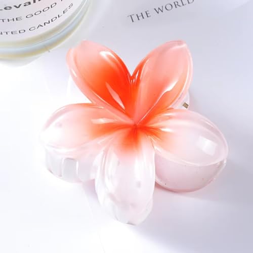 Blomma hårklämmor, Hawaii Blomma hårklämmor, stora blomformade kloklämmor, halkfria blomklämmor, stora klämmor för tjockt/tunt hår (Vit Orange)