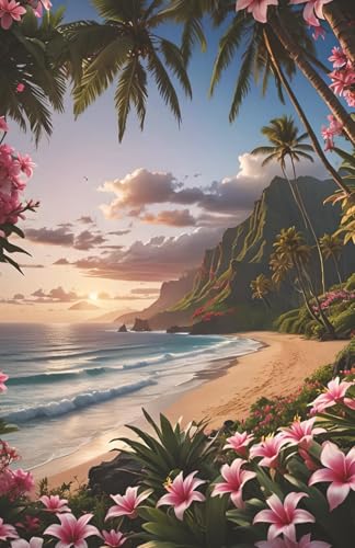 Notebook, Journal, Hawaii, Hawaiian Coast, Flowers, 144 Pages, College Ruled, Matte Finish