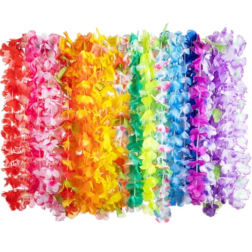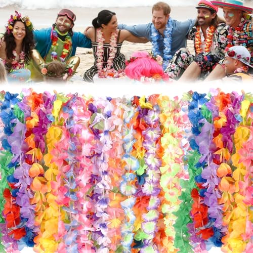 LPAOIS 60 stycken Hawaiiansk krans halsband, tropisk Hawaii Hula, Hawaii Luau Leis, Hawaii halsband blommor, Hawaii halsband, Leis Hawaiianska festdekorationer för tropisk strand temafest dekorationer