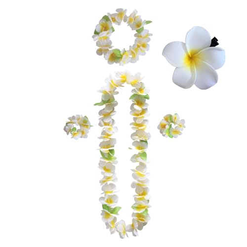Lilbitty 5 st blomkedja dekoration tyst blomkedjor Hawaii kedjor blommor med halsband pannband armband hårklämmor, Luau blomkrans för Hawaii strandfester bröllop, vit
