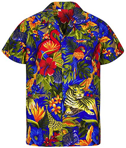 V.H.O. Funky Hawaii-skjorta | Män | Kortärmad | Framficka | Hawaii-tryck | djungel djur blommor, M