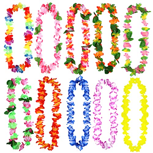 JOYIN Leksak 12 stycken Hawaiian Leis Bulk, tropisk blomma Lei Hawaiian Lei Beach Hawaii Luau festgåvor dekoration födelsedagsfest tillbehör
