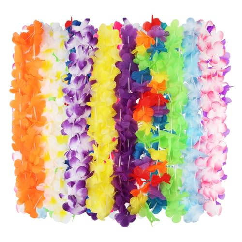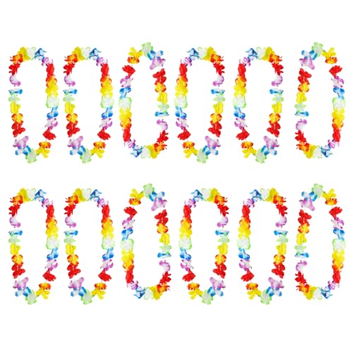 Aomig Hawaiianska girlanger Hawaiian Leis set, 12 st strandtema festtillbehör hawaiiansk tropisk strand fin klänning festdekorationer blomma halsband Hawaii för vuxna barn för sommar strand semester