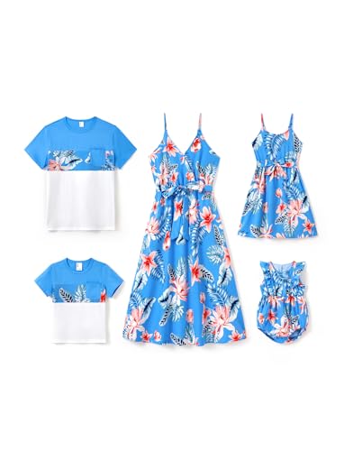 PATPAT Familjepartnerlook set – Hawaii sommaroutfit för mamma, pappa, barn – strandkläder familj – mor dotter klänning & far son t-shirt – matchande outfit semester & fotografering, Himmelsblå, 6-7 år