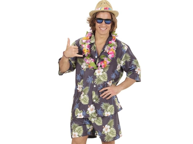 W WIDMANN MILANO Party Fashion Hawaii set, kortärmad skjorta och shorts, blommor, aloha, strandfest, maskeradklänning