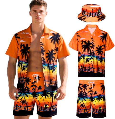 Hawaii skjorta män, Hawaii-skjortor outfit herrskjorta shorts hinkhatt sommar Hawaii-skjorta palmer tropisk strand festival fest, apelsin, XXL