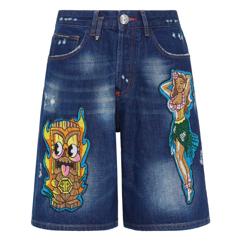 Philipp Plein, Shorts , Herr, W34, Denim, 5-Pocket Denim Shorts Hawaii