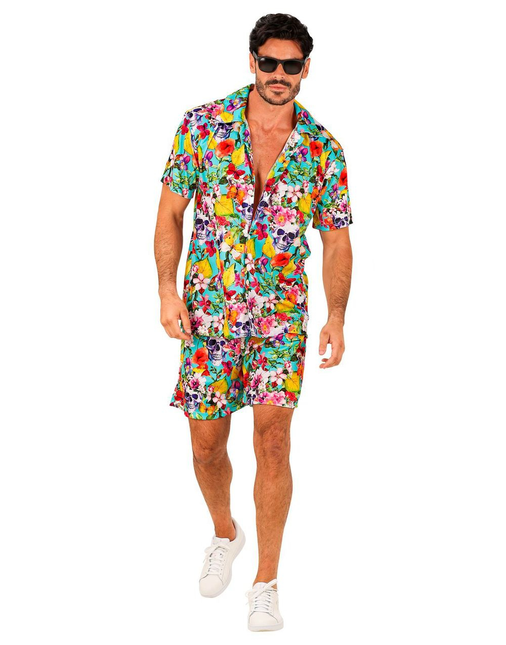 Blommig Hawaii Skjorta och Shorts med Dödskallar