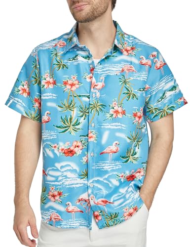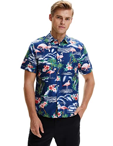 AIDEAONE Hawaii-skjorta för män, strandskjorta Hawaii skjorta, kortärmade skjortor, A-flamingo 1, XXL