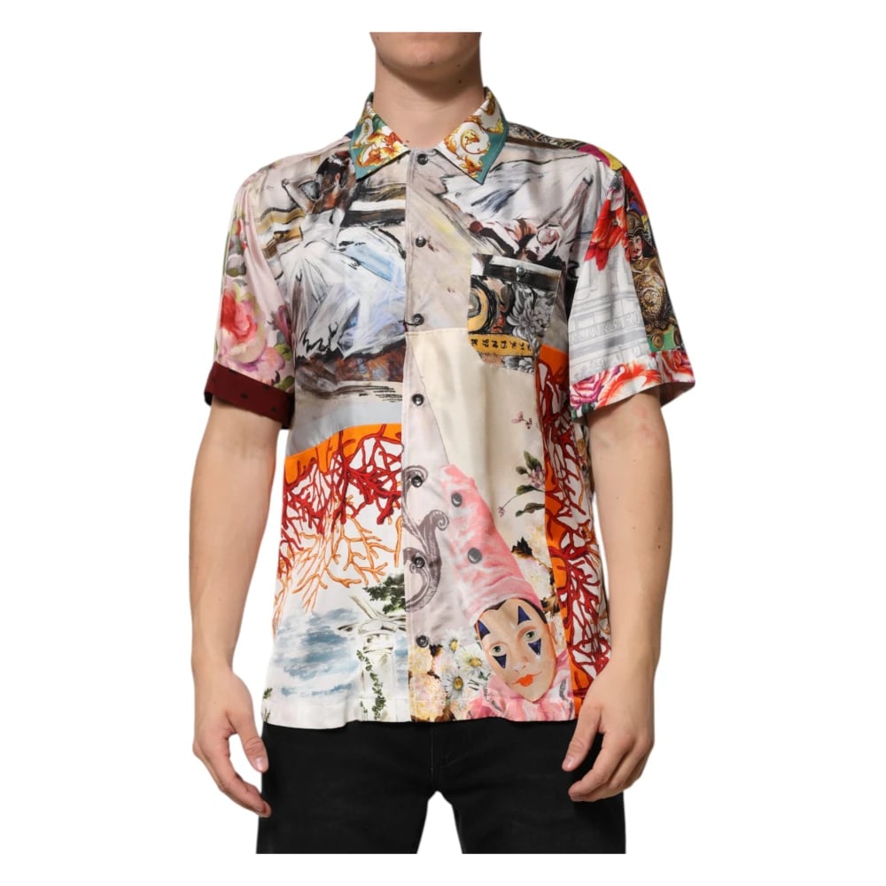 Dolce & Gabbana, Skjortor , Herr, M, Multifärgad Shell Print Hawaii Casual Skjorta