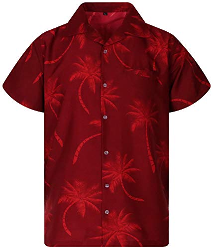 King Kameha Funky Hawaii-skjorta för män, kortärmad, frontficka, Hawaii-tryck, palmskuggutseende, Rödbrun röd, L