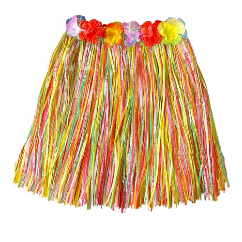 Widmann 33686 – Hawaii kjol med blombälte, mini, flerfärgad, längd 45 cm, strand, sommar, strand, karneval, temafest