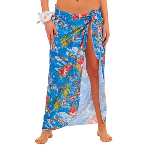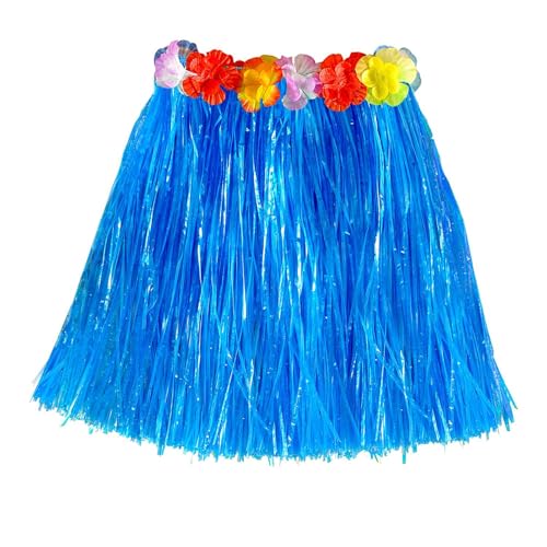 Widmann 33685 – Hawaii kjol med blombälte, mini, blå, längd 45 cm, strand, sommar, strand, karneval, temafest