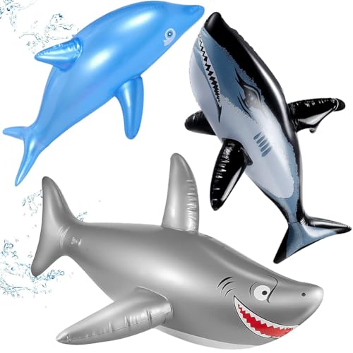 MEZHEN Hai uppblåsbar leksak, haj, uppblåsbar leksak, pool för sommar, pool, Hawaii, dekoration, temafest, strand, backdrop, 3 stycken