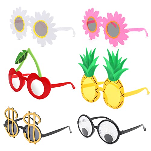 Teklemon Festglasögon för Barn/Vuxna, 6 Pack Hawaiian Tropic Solglasögon, Roliga Glasögon Hawaiian Tropical Glasögon Kostym Festsolglasögon för Strandtema Dekoration, Festtillbehör, Fotorekvisita