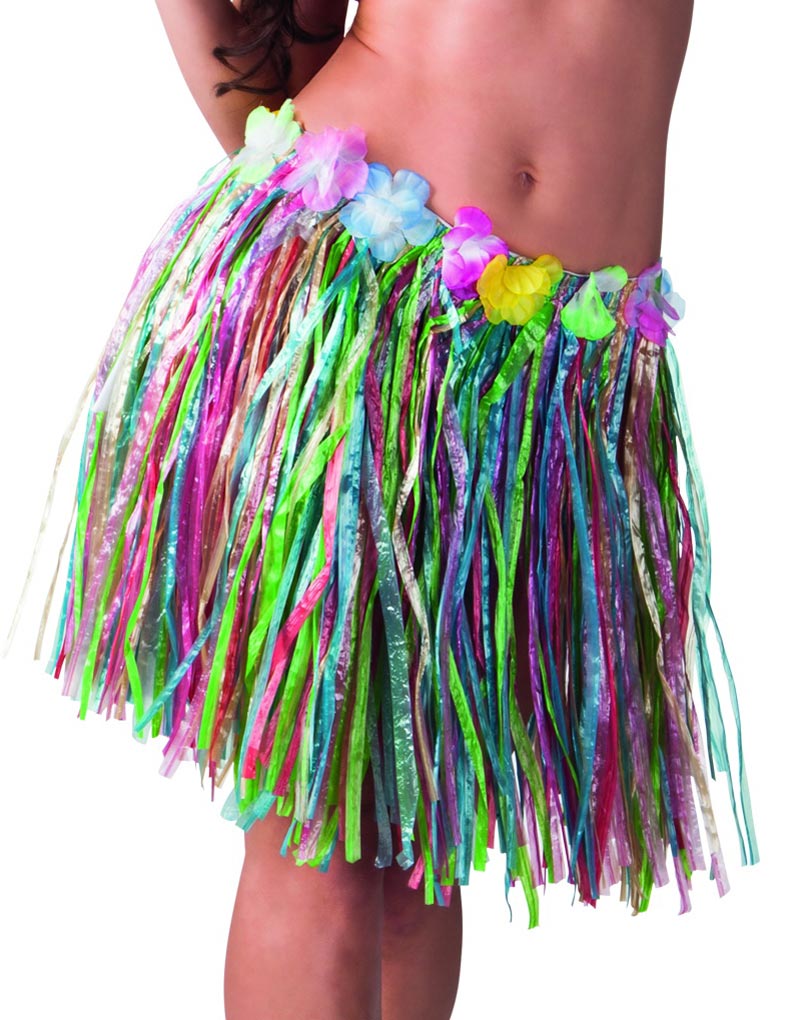Flerffärgad Hawaii-Kjol med Blomsterkant 45 cm