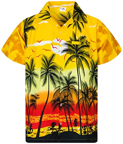 King Kameha Hawaii-skjorta för herr, funky casual krage, bröstficka, unisex, kortärmad strand, Strand gul, L