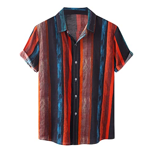 AIDEAONE Hawaiiskjorta herr, kortärmad tropisk skjorta i ledig stil, med knappar, M