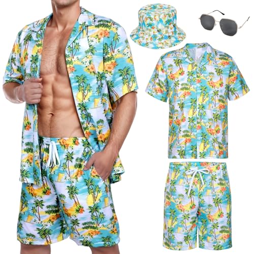 Hawaiiskjorta herr skjorta kortärmad blomma funky Hawaii casual strand tropisk sommar aloha skjorta byxor solglasögon semester, Färg 3, 3XL