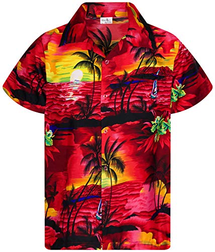 King Kameha Hawaii-skjorta för herr, funky casual krage, bröstficka, unisex, kortärmad strand, XL