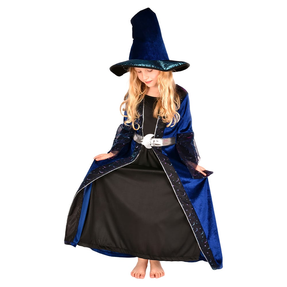 Häxklänning utklädnad halloween, strl. 122–134, för barn 7–9 år