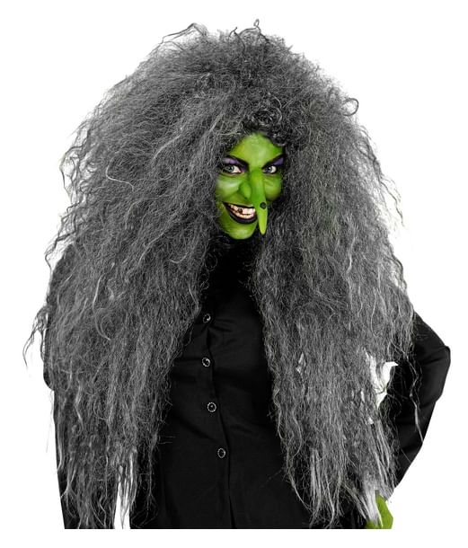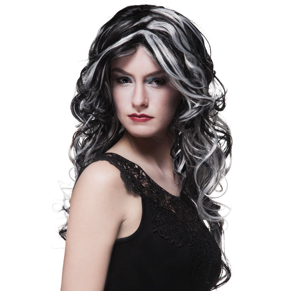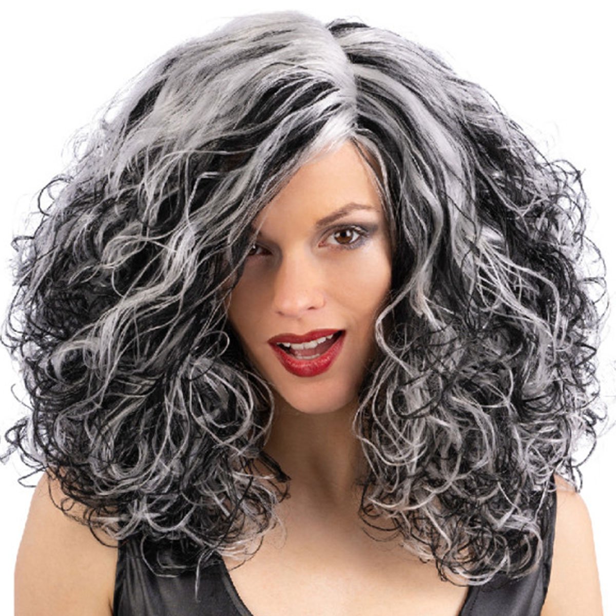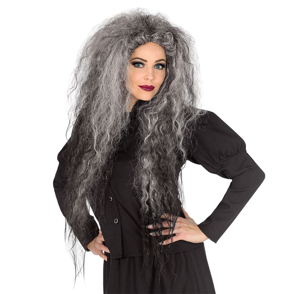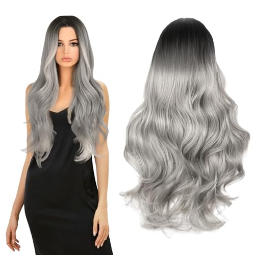 Peruk dam, 70 cm silvergrå peruk kvinnor, syntetisk peruk med hårnät, grå lång vågig lockigt hår, gotisk häxperuk, karneval damkostym tillbehör, halloween cosplay maskeradfest