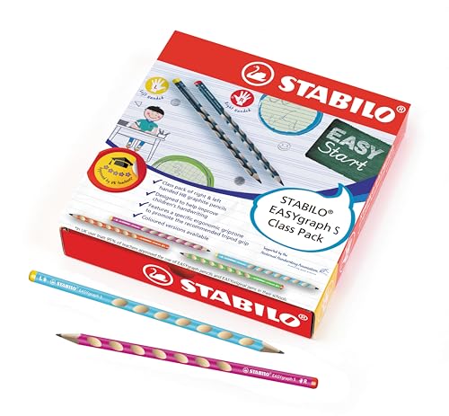 Smal trekantig penna – STABILO EASYgraph S i 5 färger – 48-pack – hårdhet HB – 8 x för vänsterhänta + 40 x för högerhänta användare