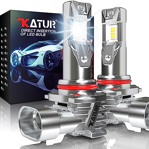 KATUR 9005 LED Strålkastarlampor, HB3 LED Lampor 16000LM 6000K Vit 500% Ljusstyrka Fanless Vattentät Ministorlek Plug and Play Konverteringssats Halogenutbyte, Förpackning Med 2