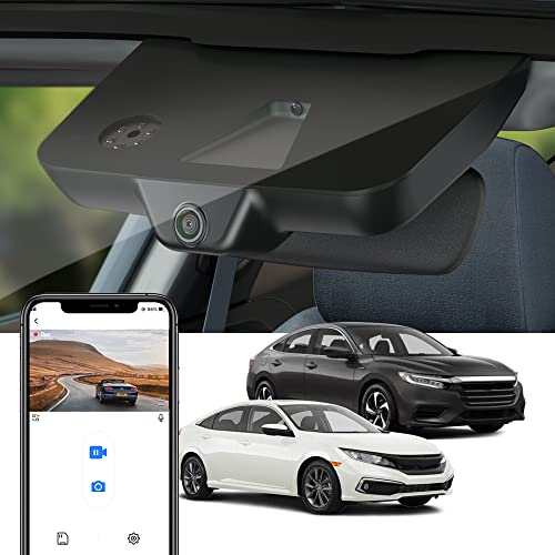 Fitcamx Dashcam Lämplig för Honda Civic 2016-2021 Sport LX EX Touring Si & Insight 2019-2022 (HD2-0211), OEM Bilkamera 4K 2160P UHD Video WiFi, G-sensor, Loop inspelning, WDR, Plug & Play, 64GB-kort