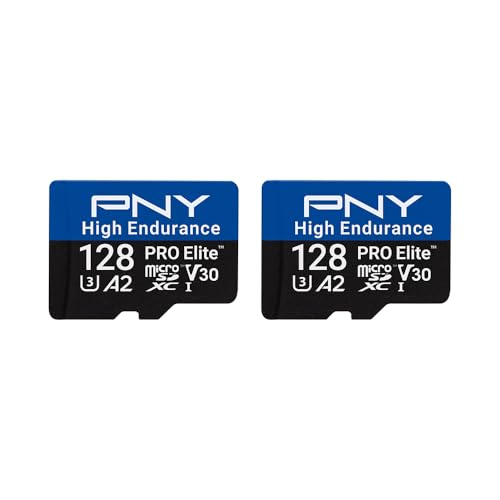 PNY 2x128GB PRO Elite™ High Endurance C10 U3 V30 A2 microSDXC-flashminneskort – upp till 100/90 MB/s läs-/skrivhastighet, 4K UHD, Full HD, UHS-I, övervakning, hemskydd, bilkamera