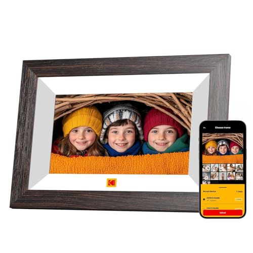 KODAK Digital bildram 7 tum, Wlan digital fotoram, 32 GB minne, HD IPS-pekskärm, bilrotat, smart trä, elektronisk bildram, dela foto/video direkt via app var som helst