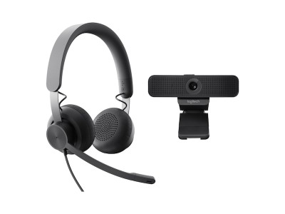 Logitech wired Personal Video CollabKit – GRAPHITE HD-webbkamera och USB-headset perfekt för bullriga arbetsområden.