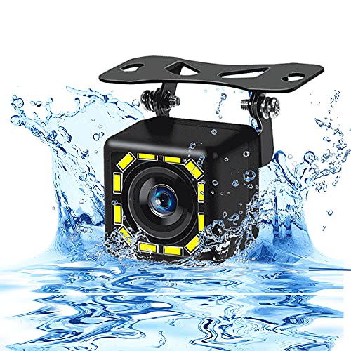 Hikity - Bilbackkamera 170° vinkel Vattentät 12 LED Night Vision, 6M RCA-videokabel, 12V HD-backkamera för bilar, pickuper, stadsjeepar, husbilar, skåpbilar (svart)
