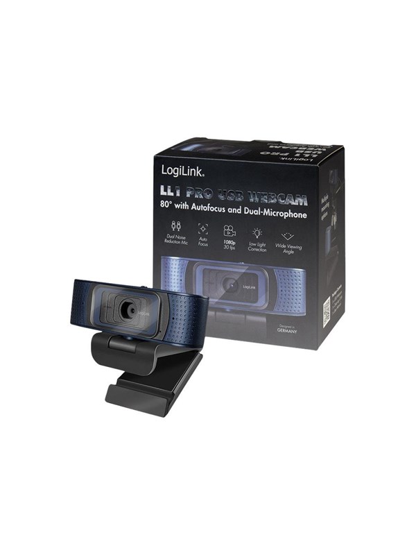 LogiLink HD USB webcam Pro 80° dual microphone auto focus privacy cover