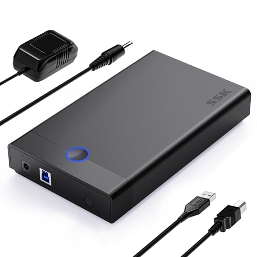 SSK 3,5 hårddiskhölje, USB 3.0 till SATA HDD Caddy för 2,5 3,5 tums SATA SSD/HDD upp till 20 TB, verktygsfri extern hårddiskhölje, stöder UASP-Trim
