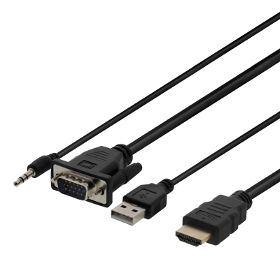 VGA- och ljudkabel till HDMI, max 1920x1080, drivs via USB, 1 meter - Svart