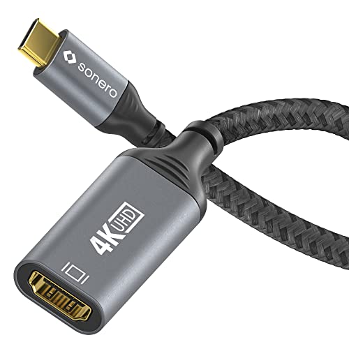 Sonero® 4K USB-C till HDMI-adapter, HDMI-uttag till USB-C-kontakt, 4K 60 Hz, 18 GB/s, bomullsrock, grå/svart, 0,10 meter