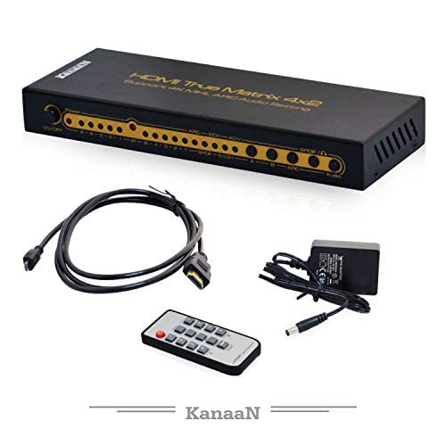 OREI 4K HDMI matrisomkopplare 4 x 2, omkopplare 18G UltraHD med båge stöder upp till 4K @ 60Hz och 1080P IR-fjärrkontroll – fullständigt matrisval