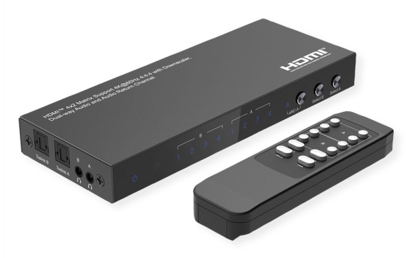 ROLINE 4K HDMI-matrix-switch, 4 x 2, med fjärrkontroll