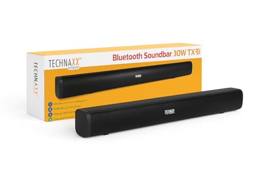 Technaxx Bluetooth 2.0 Soundbar 30W för TV TX-311 med HDMI-ARC, optiska & AUX-ingångar, dubbla 15W högtalare, Bluetooth 5.0, fjärrkontroll ingår - Perfekt för TV, smartphones, surfplattor och datorer