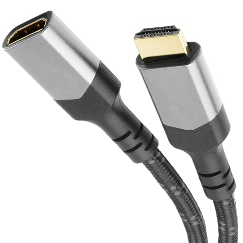 KabelDirekt – 10K & 8K HDMI-förlängning, HDMI 2.1 b – Särskilt flexibel, Metallkontakter + flätning – 1m (förlängningskabel, 8K vid 60Hz, PC, PS5, XB, monitor och TV – Svart-Silver)