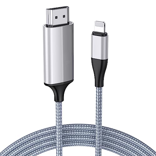 lulaven HDMI-kabel för iPhone, 1080P digital AV-kabel för TV-projektorskärm kompatibel med iphone 13 12 11 SE XS XR X 8 7/iPad, Plug and Play, grå 2,0 m