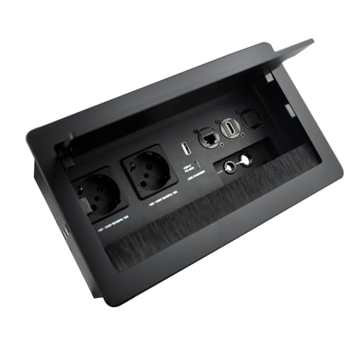 Bordskontakt, Power Strip aluminium, 2 x Schuko-uttag, 1 x USB-A+C-laddare (PD 65 W), 1 x CAT6-kabel, 1 x HDMI-port, 1 x USB-C-port, 1 x 1,7 m strömkabel, 4 x kabelhållare, multimediakontakt