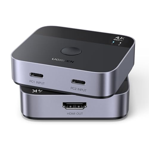 UGREEN 2-i-1-out switch 2 USB-C i 1 HDMI Out 4K@60Hz 2 PC 1 bildskärmsbrytare, plug and play, HD Audio Sync, ESD-skydd för ångdäck/laptop/projektor etc.