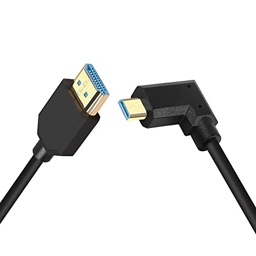 GELRHONR 4K mikro HDMI-spiralkabel, kort Micro HDMI-kontakt till HDMI-kontakt fjäder flexibel tunn kabel, micro HDMI 90 graders kabel 18 Gbps 3D 4K@60 Hz, för kamera videoinspelning kort (vänster