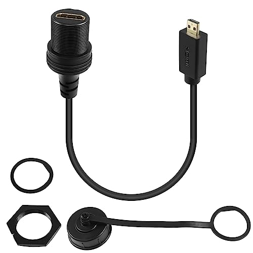 QIANRENON Micro HDMI 2.0 till HDMI 2.0 gängad fastsättning 4K mikro HDMI hane till HDMI hona bil instrumentpanel expansionskabel, för enhet, kamera, bilnavigering, 30 cm/11,8 tum